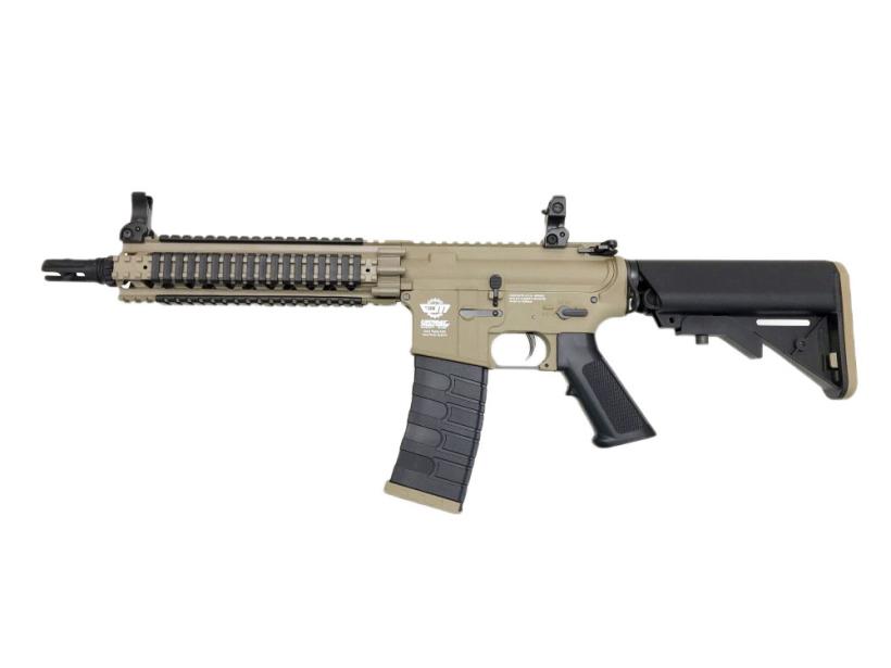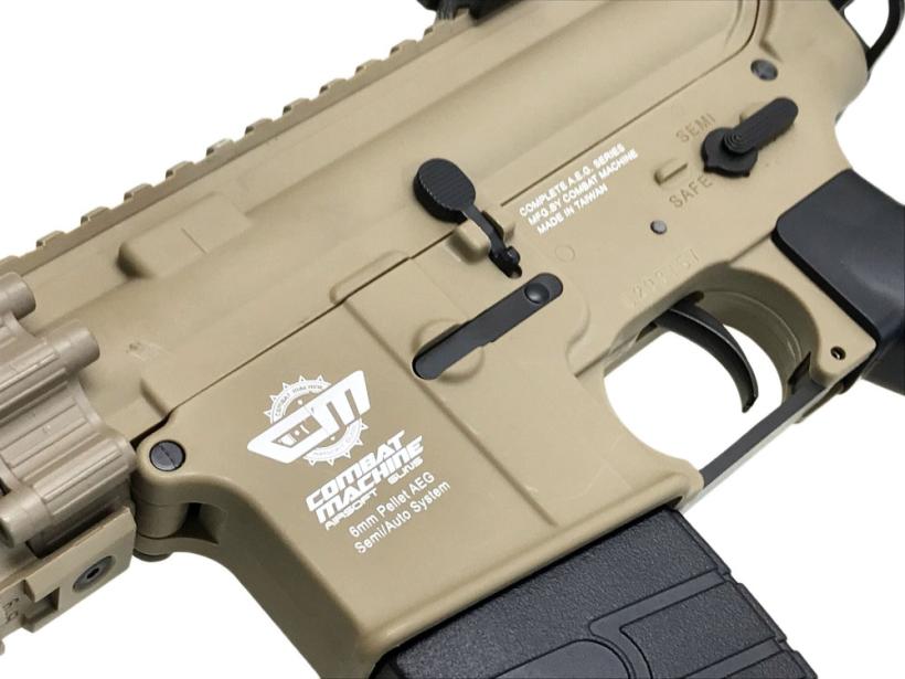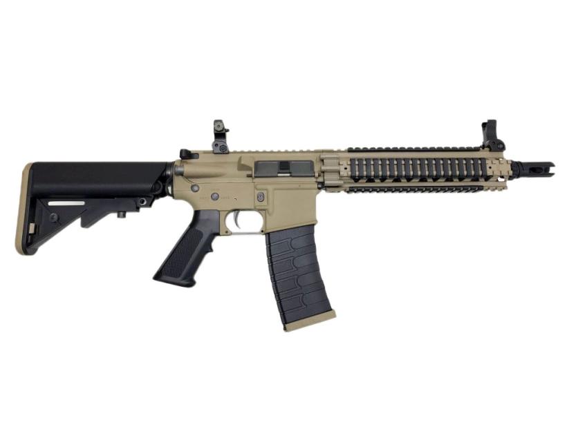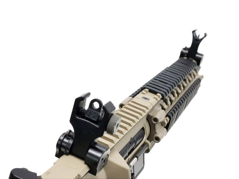 CM16 Raider譲りの信頼性のメカにファイバー製ダニエルタイプ12inchハンドガード そして着脱式のフロント/リアサイト、BLACK/TANのコンビもスタイリッシュ。