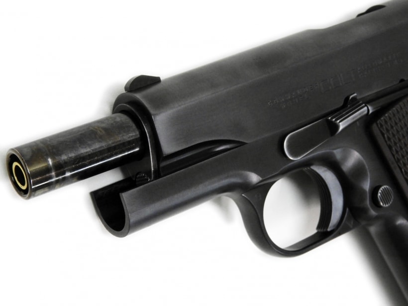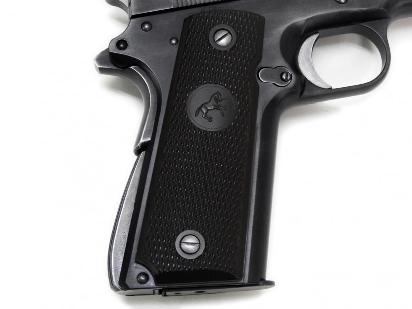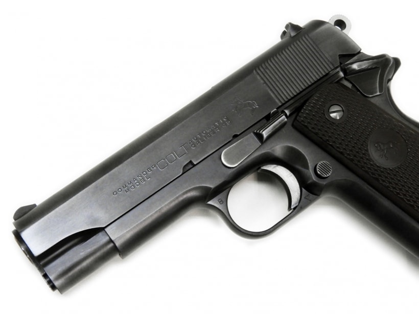 ガバメントと同じサイズのグリップながら、4.25インチサイズに切り詰められたスライドが特徴のコマンダーモデル。その絶妙な組み合わせは、現在流行を見せるサブコンパクトサイズの先駆といえるもので、非常に取り回しが容易です。この度ベースとなったのは、大胆な軽量化が図られた初期型モデルです。後継モデルのコンバット・コマンダーに比べシンプルな刻印が、クラッシックな雰囲気を漂わせています。