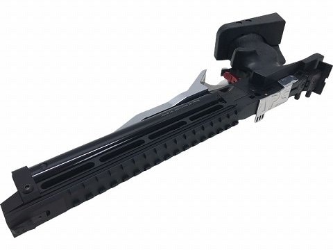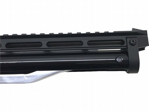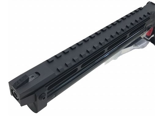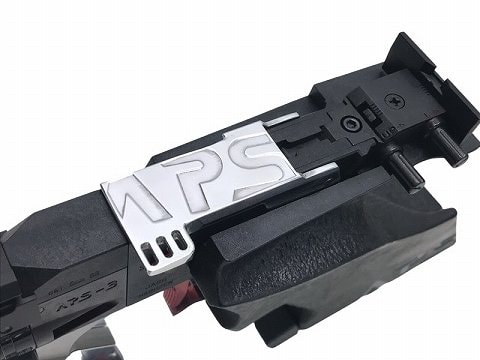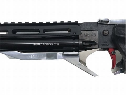 同じ黒でも異なる表面仕上げのパーツを組み合わせることで、ぐっと精悍でスタイリッシュなAPS-3にイメージチェンジ。 さらに、アルミ削り出しワンピーストリガーのレッドアルマイトのアクセントがブラックカラーを一層引き立てる。