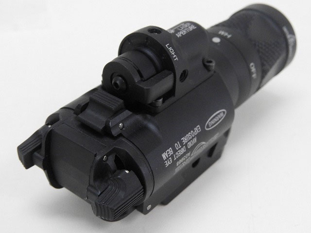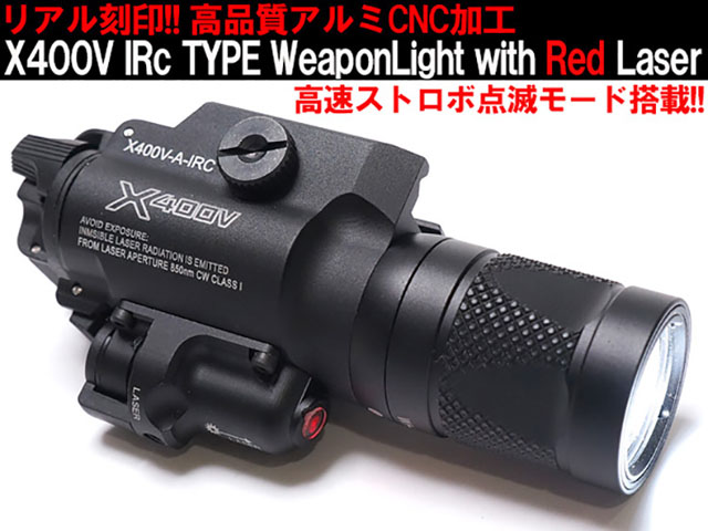 SUREFIRE製ウェポンライト・X400Vタイプのレプリカ。とはいえ見分けが付かないほどのリアルな刻印。高速ストロボ点滅、レッドポインター。