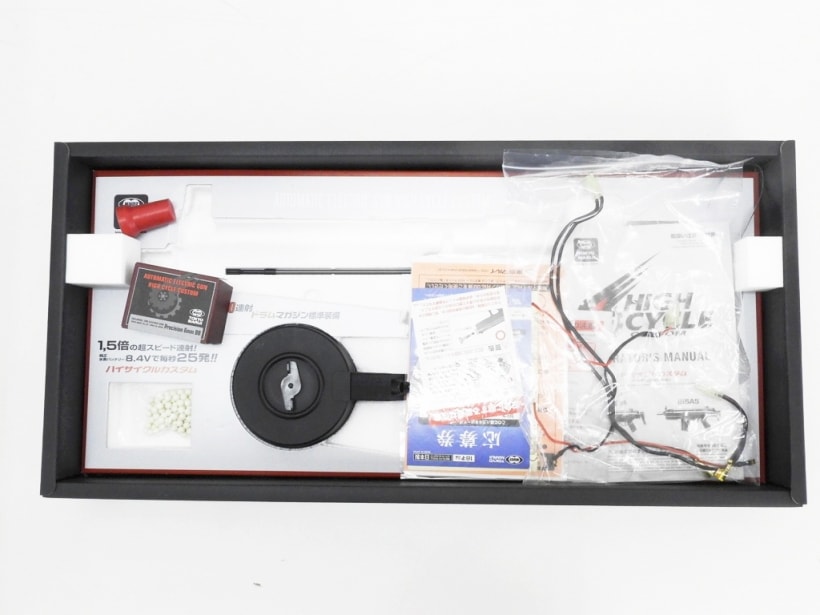 箱・説明書・付属のマガジン等が全て揃っている商品です。ただし、保護キャップ、試射用BB弾、汎用品レンチ等の消耗品や、ハガキ・フライヤー等の書類については商品写真に写っているかどうかに関わらず付属しないことがあります。