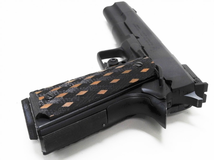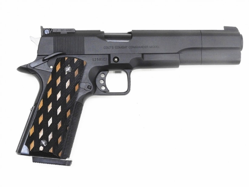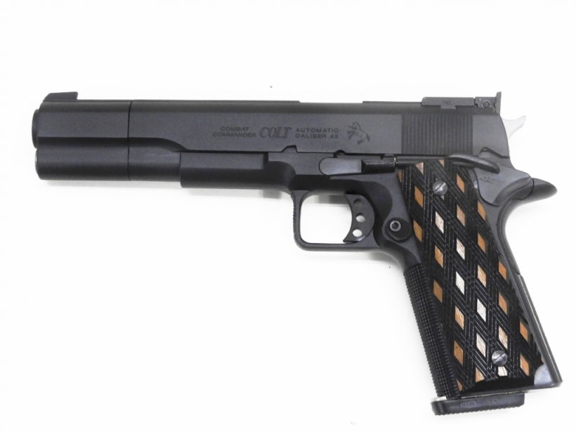 ビアンキカップのコルトスピードイベント等でボーリングのピンを撃ち落す競技にカスタムされたガン。MGC製による希少な発火式モデル。