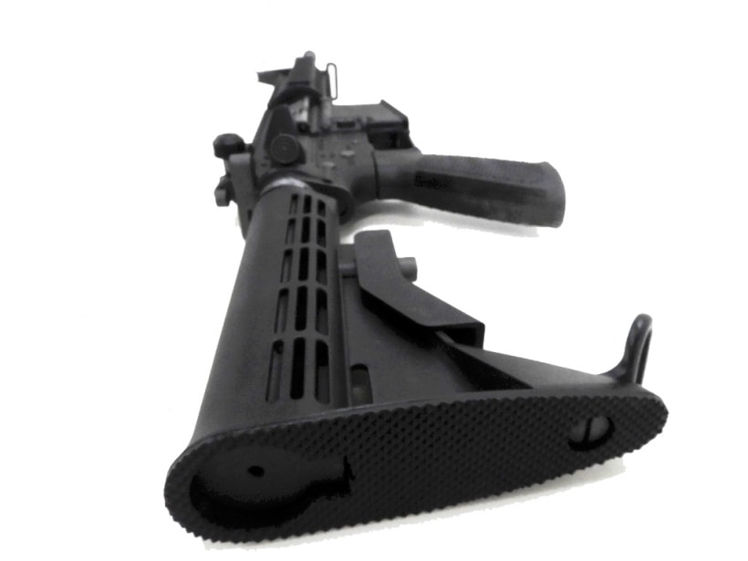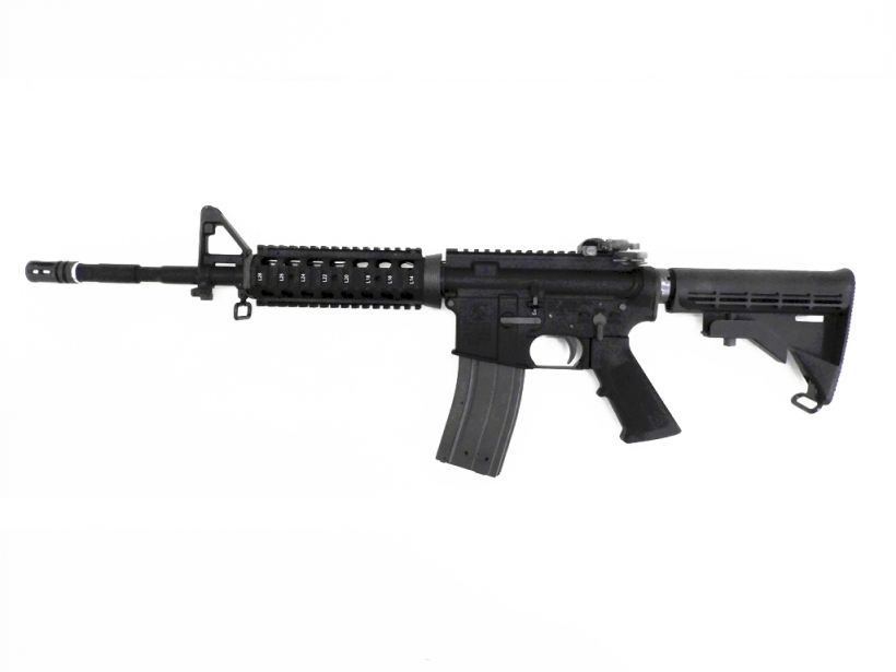 最も一般的な14.5インチバレルを採用したカービンモデル。装備されている「551タイプドット・サイト」は、米軍が採用しているイオテックスタイル。無倍率のレンズに表示されるドットを標的に合わせてトリガーを引けば弾丸が命中するという真に便利な優れたサイト。ドットは、レッドとグリーンに切替可能。