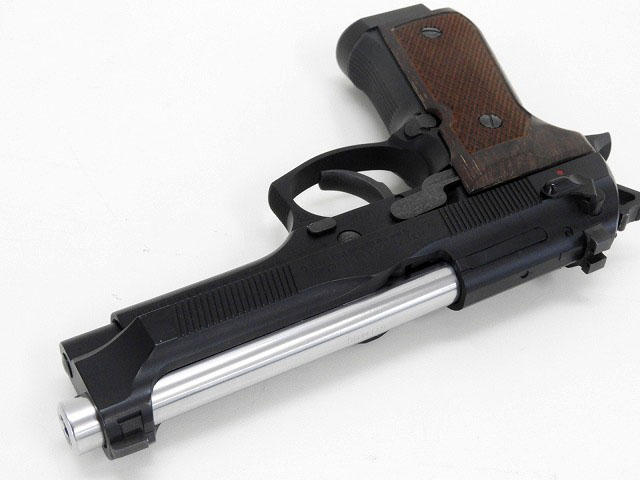 ベレッタM92エリートCQBとタクティカルエリートを合わせたようなカスタム。木製グリップ装備。