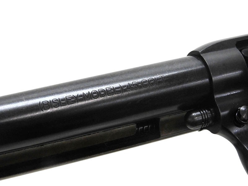 英国の射撃場“ビズリー”の名を冠した、コルトSAAのターゲット・モデル。『荒野の七人』や『グレイフォックス』などの西部劇に登場。射撃に適した猫背型の独特なフレームに、特徴的な形状のハンマーが目立つ。発火カートリッジ6発付属。