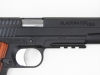 設計当初よりハイグリップを念頭にデザインされた独創的なレールドフレームには、ソリッドなロングトリガーや、エクステンディッドアンビサムセフティ、テール部がシェイプされたハイライドグリップセフティ、マガジンウェル等々、ブラックウォーター仕様ならではのカスタムパーツを網羅。タクティカルモデルとしてブラッシュアップされたというコンセプトがうかがい知れる充実したスタイルにまとめあげられています。