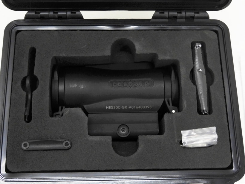 リフレックス(オープン)型ドットサイト、『HE530C-GR』のグリーンレティクル(緑色に発光するレティクル)バージョンです。