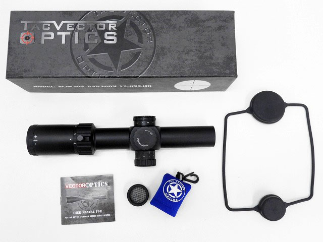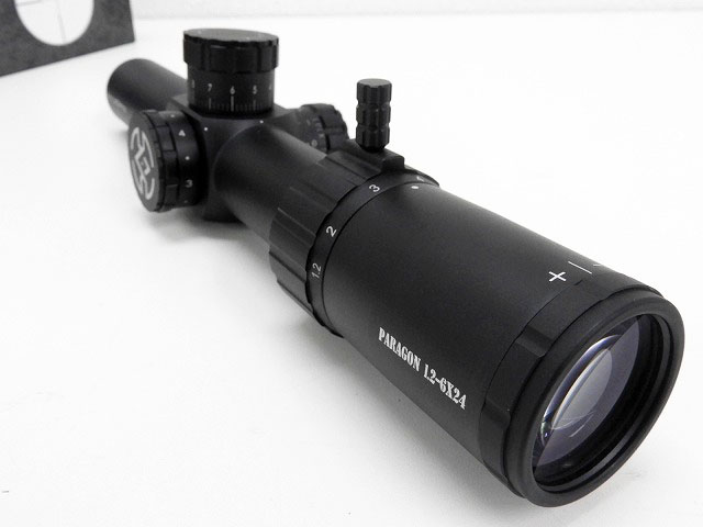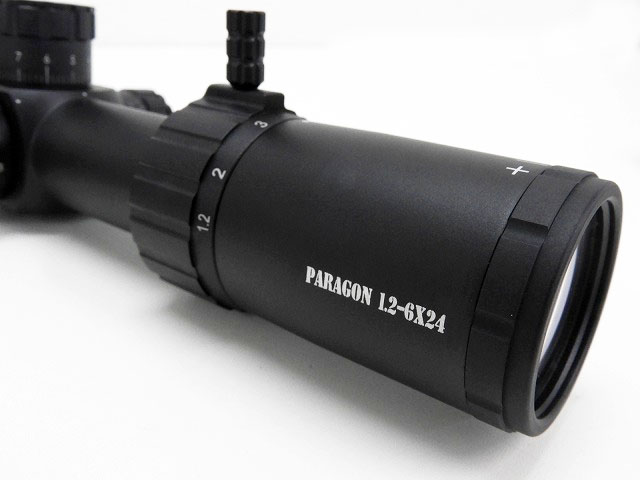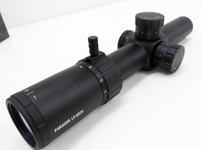 実銃用光学機器メーカーTAC VECTOR OPTICS のイルミネートライフルスコープ PARAGON 1.2-6x24。高性能スコープ。