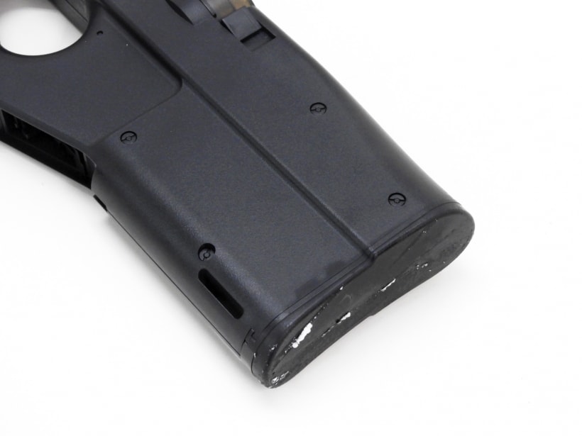 [東京マルイ] P90 旧パッケージ バッティングプレートべたつき (訳あり) 製品詳細画像3 バットプレート部。お届けの際は梱包用ラップで触れないようにしています。