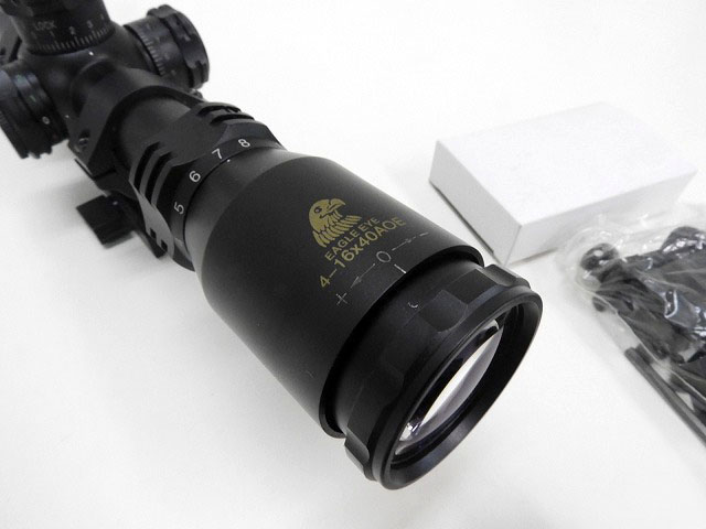 [EAGLE EYE] 4-16×40 AOE フロントフォーカス ライフル スコープ BK ロング 3倍〜 ピカティニー Φ25mm イルミネーション マルイハイマウント付 (中古)の販売ページ|エアガン.jp