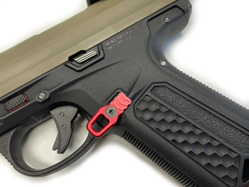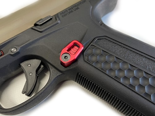 ActionArmy製アサシン対応CNCアルミ製マガジンキャッチ。カラーはブラックです。