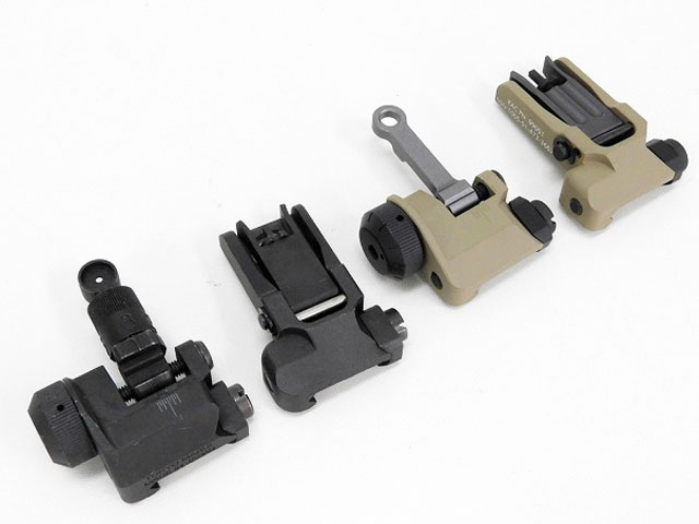 東京マルイ等 フロント/リアサイト 2セット BK/TAN 。画像のBKフロントリアセットとTAN KACタイプのフロントリアセット。