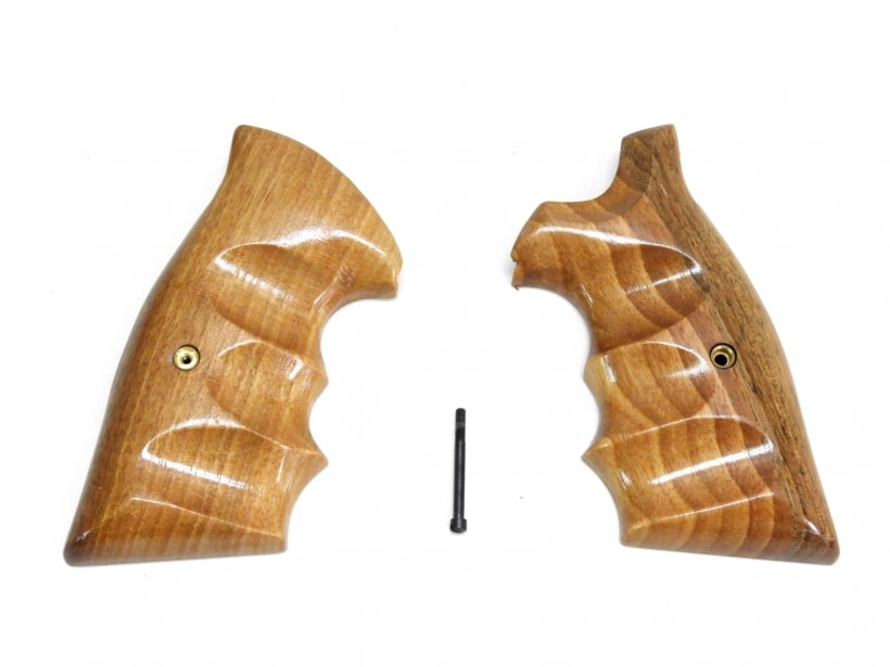 [NB] S&W Kフレーム用 スクエアバット オーバーサイズ 木製グリップ フィンガーチャンネル (中古) 製品詳細画像1 片側のスクリュー金具は外れます