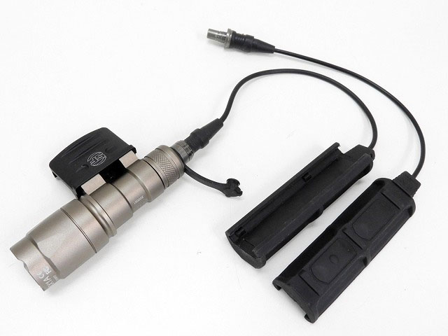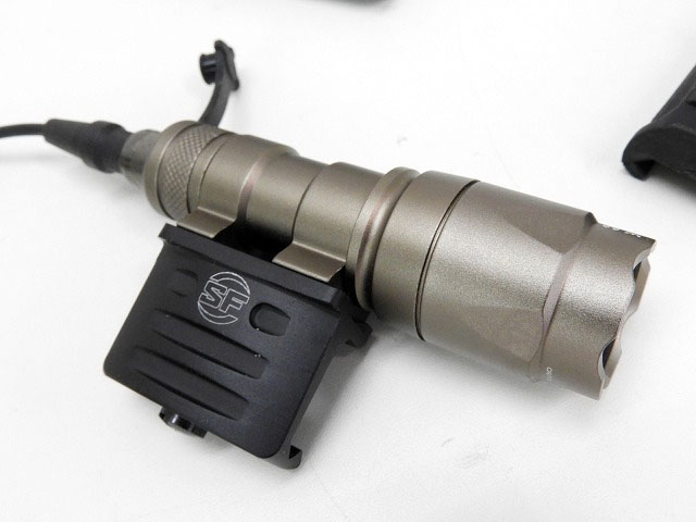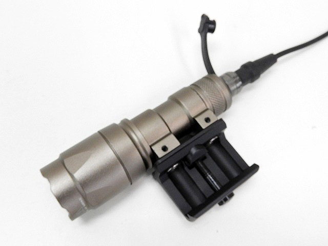 シュアファイア社 M300A のレプリカ。FDE。画像のリモートスイッチが付属するラッシュライト。約20mm幅のマウントレイルに対応。アルミ合金製で、軽量・高強度。