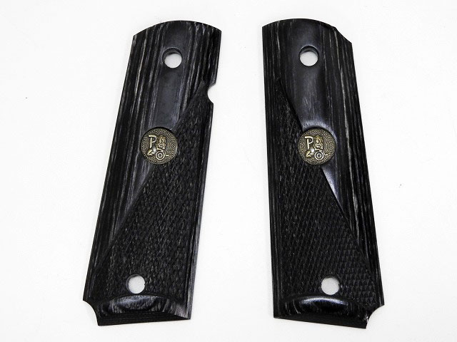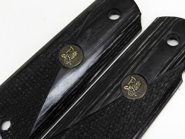 [NB] WA ガバメント用 ハーフチェッカー木製グリップ パックマイヤーメダリオン BK (中古) 製品詳細画像