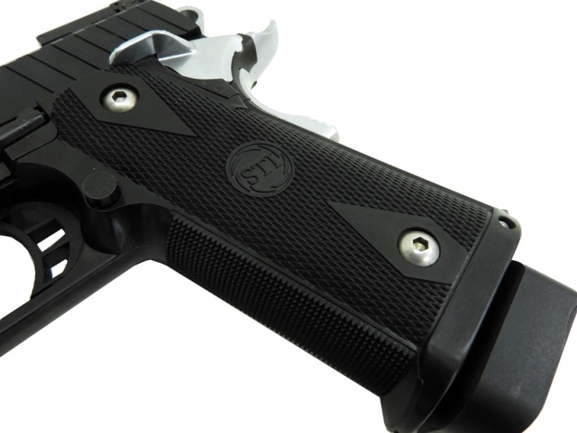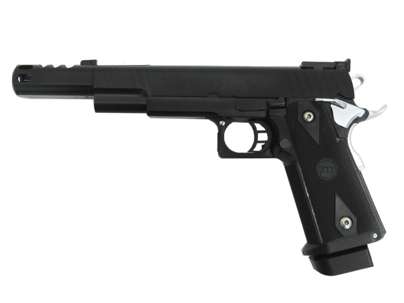 STIを代表するスピード競技専用モデル。リコイルを軽減させるマルチポートのコンペンセイターと銃身上部のハイブリッドシステムが秀逸。残念ながらエアガンにおいては形状の再現でしかないが、そのディザインを利用してシリーズ最長のインナーバレルを装備し、超一級の命中精度を叩き出す実力を持つ。