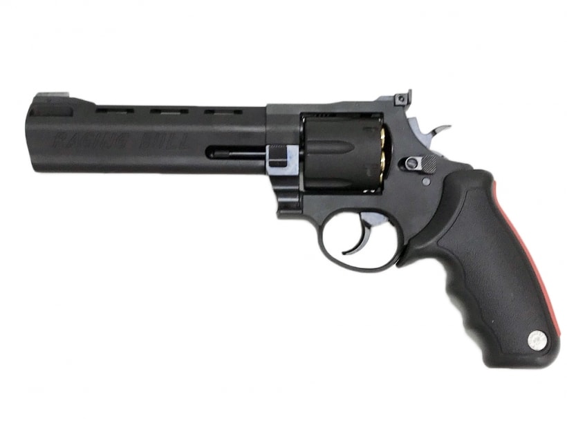 トーラス社のリボルバーのなかでもレイジングシリーズだけがもつグリップ後方の赤いラインなど、銃というよりもアート作品のような雰囲気がある。