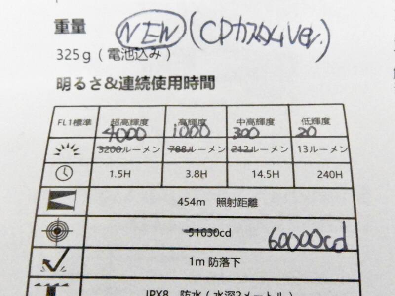 [WUBEN]T102 CPカスタム ブラック フラッシュライト 4000lm (中古) 製品詳細画像5 説明書の手書き修正は、CUPOLAさんでの販売時のものとの事。