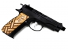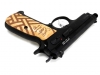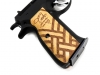 ・エレガントなスキップド・チェッカー風の木製グリップを装備