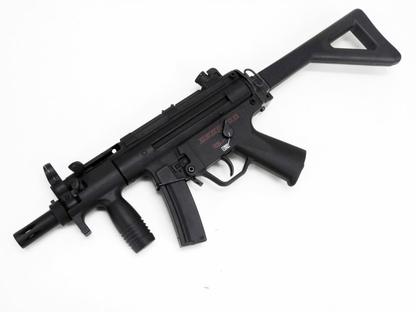 海外製のMP5電動ガン。フルメタルで剛性は十分です。コッキングハンドルを引いたときの実銃のような金属音がたまりません。