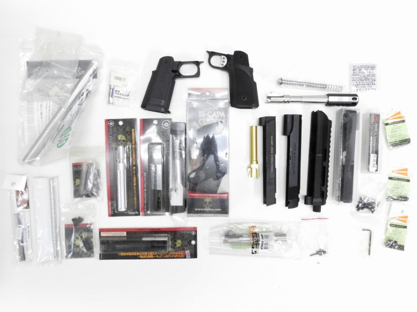 主にガスハンドガン用と思われるパーツ類のジャンクセット。個々の詳細は不明です。