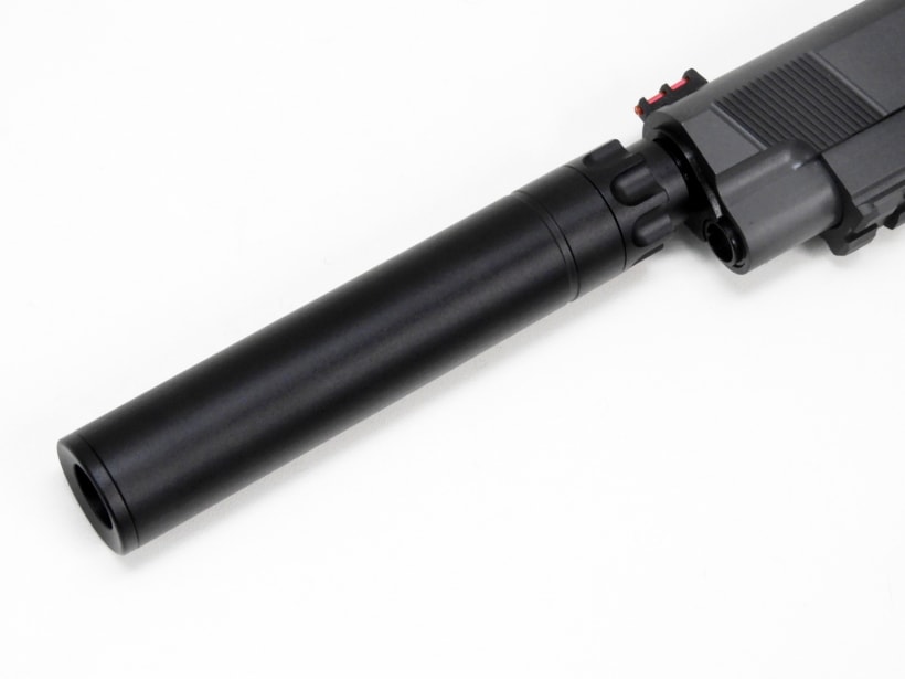 ブラックアウトされたブッシング型バレルには、アダプターの類いを必要とせずダイレクトにサイレンサーが取り付けられるM14スレッド(正ネジ)を装備しています。