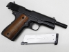グリップがスムースタイプの木製グリップにカスタム。マガジンはウィルソンタイプバンパーマガジン シルバーとなっている。
