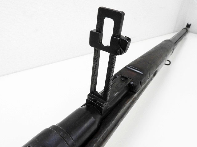 本品は床尾版がプレート型の初期型で、照星はガードが付いた中後期型仕様、照尺はVノッチ・タイプの初期型、安全子は大きめの突起のある初期型から中期型に見られるタイプが取り付けられており、全体として中期型仕様となっています。
