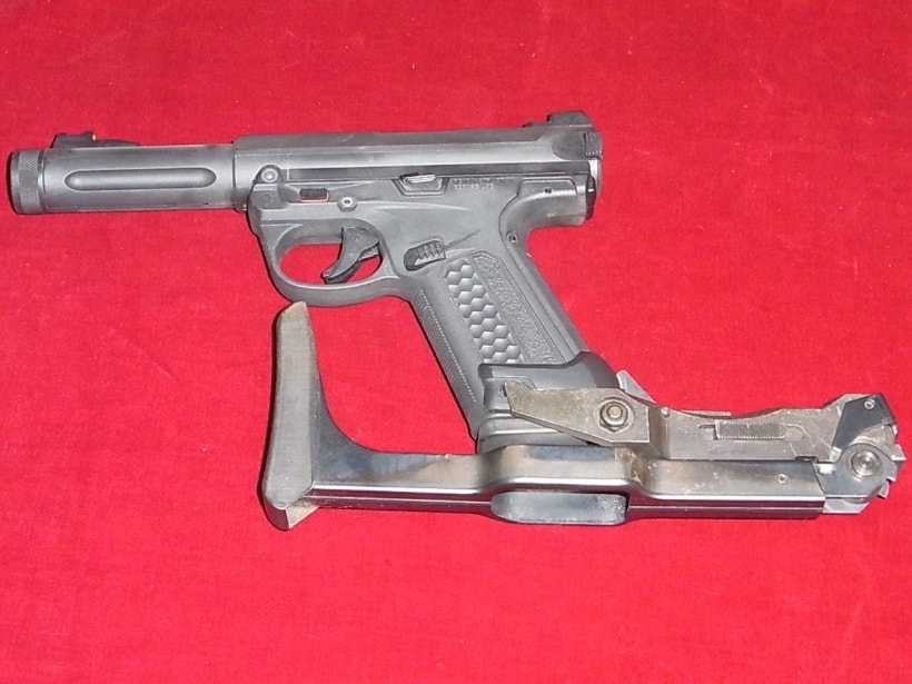 ActionArmy製アサシン対応ストックアダプター。本品を用いることでKSC、MGC製のM93R用ストックを取り付けることが可能に。