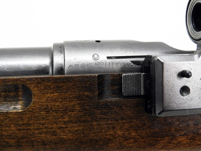 九九式狙撃銃と並んで第二次世界大戦で活躍した狙撃銃です。大まかな外観は三八式と変わりませんが、はるかに手間のかかった高性能銃ですね。