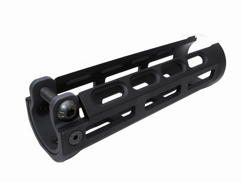 KE ARMS社のMP5ハンドガードのレプリカ。アルミ削り出しでM-Lokアクセサリー対応。東京マルイ次世代MP5の配線に干渉しない専用設計となっている。