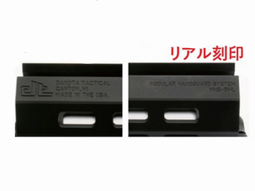 DAKOTA Tactical社のMP5ハンドガードのレプリカ。アルミ削り出しでM-Lokアクセサリー対応。東京マルイ次世代MP5の配線に干渉しない専用設計となっている。リアル刻印入り。