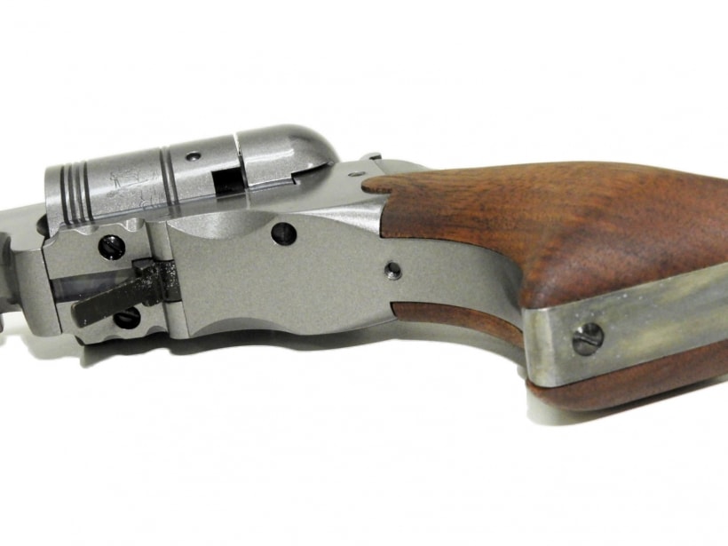 コルト社で1836年から製造が始まった銃器史上最初の量産リボルバー。HW素材に選び抜かれた塗料で金属感を出した傑作モデル、ショートバレルのバリエーション。