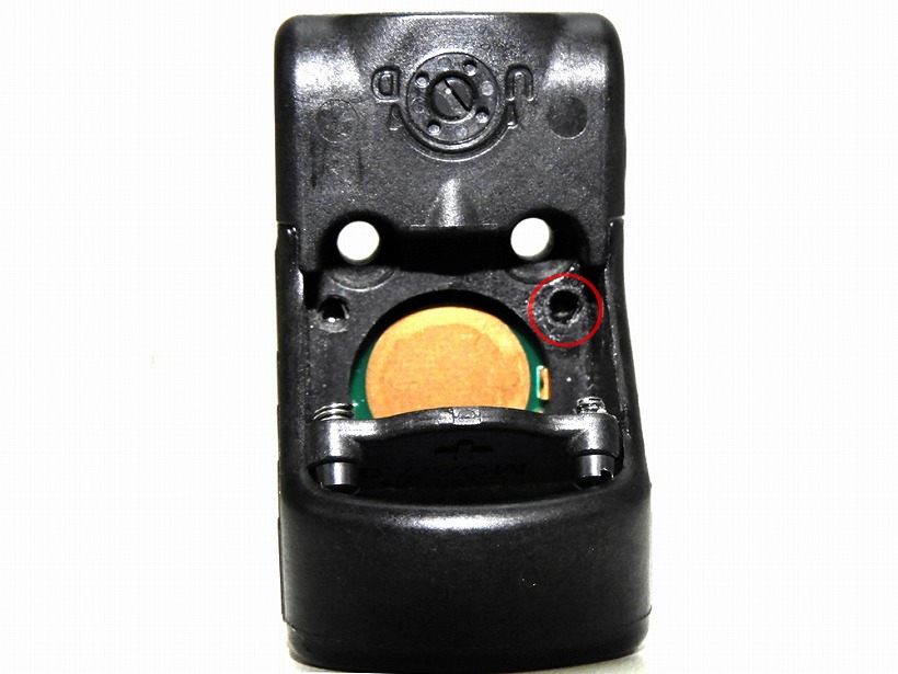 [INSIGHT] MRDS ドットサイト 7MOA BK 蓋ネジ不良 (訳あり) 製品詳細画像7 電池を格納する蓋のネジが片方ナメていますが、片方は普通に締まり、使用もできます。