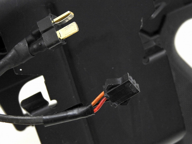 本体から2種類の線が出ており、T端子をバッテリーと接続し、もう片方をマガジンに接続することで電動で給弾することが出来る。