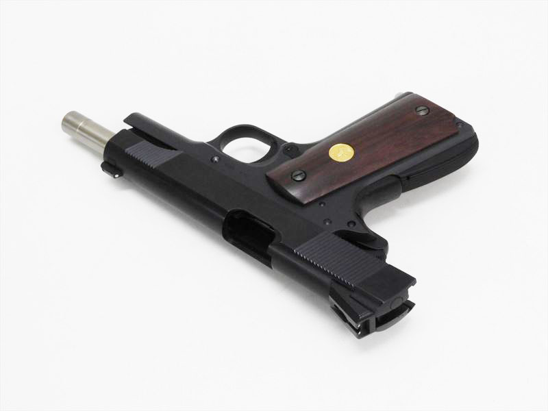 コルト MKIVシリーズ70のガスブローバックモデルをベースに、パラオーディナンス HRTのスライドとSIG ARMS GSRのチャンバーカバーを組み合わせたオリジナルカスタムです。