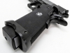 レースガンの血統を継いだ、ワイドヘッドのマガジンリリースボタンとオーバーサイズマガジンウェル、優れた視認性能を発揮するファイバーオプティックを搭載したフロントサイトと上下左右の微調整が可能なフルアジャスタブルボマーリアサイトの組み合わせによる精密な射撃が可能な点も見どころです。
