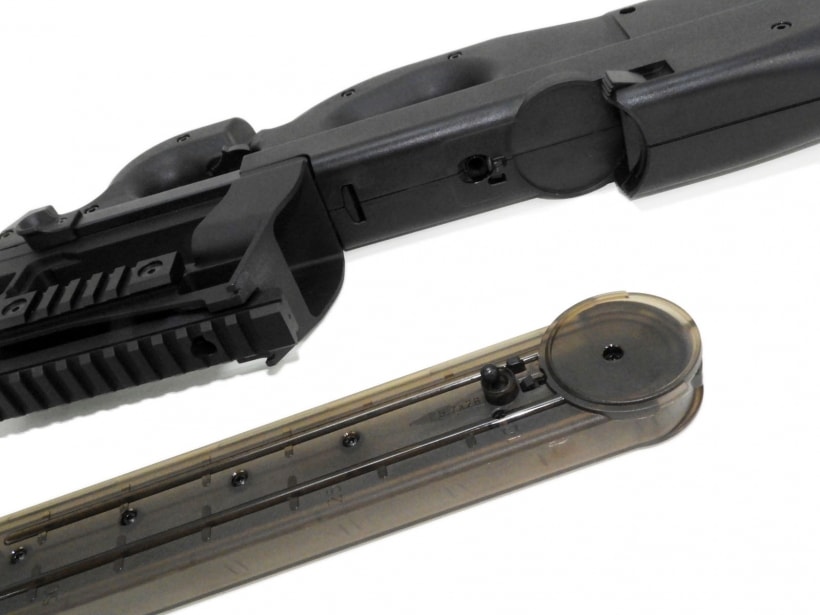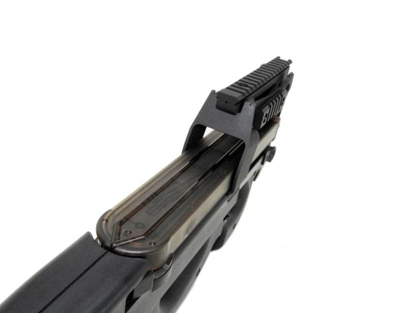 オートストップはしなくなるものの、マルイ製のP90マガジンでも問題なく射撃でき、マガジン未装着時では空撃ちも可能。