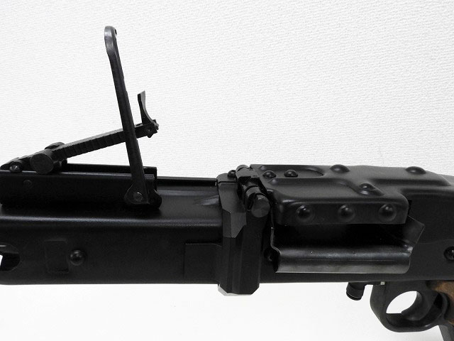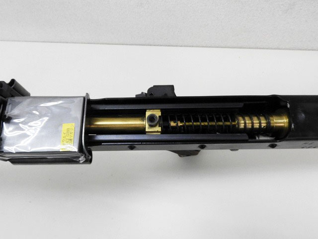 実銃と同様にボルトの前後運動によりボルトキャリアのローラーとフィードレバーを連動させ、ボックスマガジ