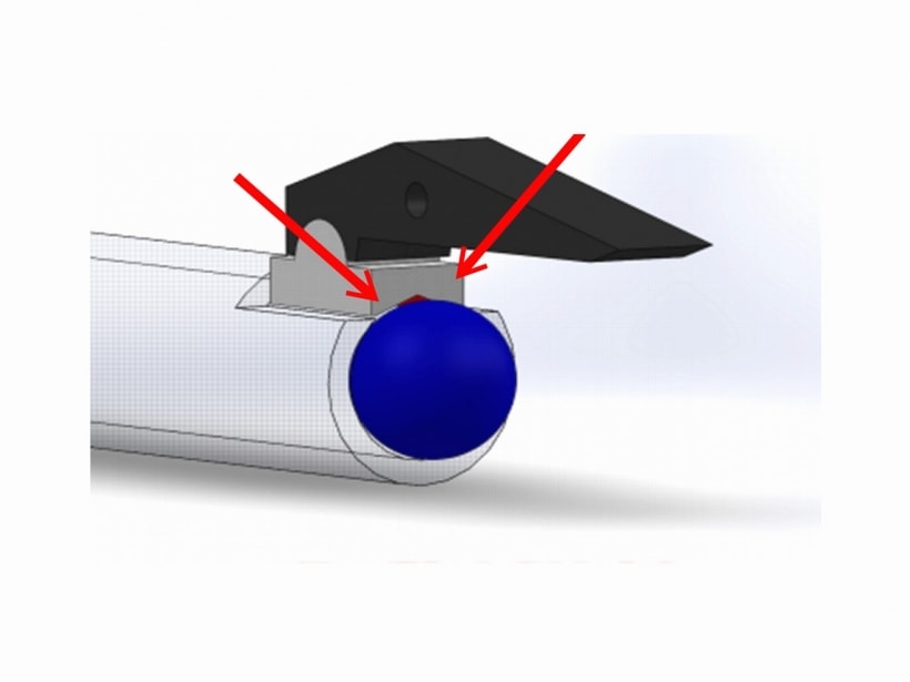 HOPラバー裏面には傾斜したV形状の溝があり、BB弾が通る際にラバーがバタフライすることでHOPをロスなく与えます。V面の傾斜は銃口側へと徐々に傾斜と同時に縮まり、BB弾をバレル中心に引き寄せることで「同軸矯正」。この同軸矯正はBB弾とインナーバレルとの干渉を防ぎ、ロスを極限まで抑えます。BB弾は推進エネルギーでそのまま突き進み、HOPはBB弾の表面を滑るようにバタフライして入口から出口までBB弾を矯正させて行くので「強回転」「垂直回転」のロスなく維持しバレルから発射される仕組みです。