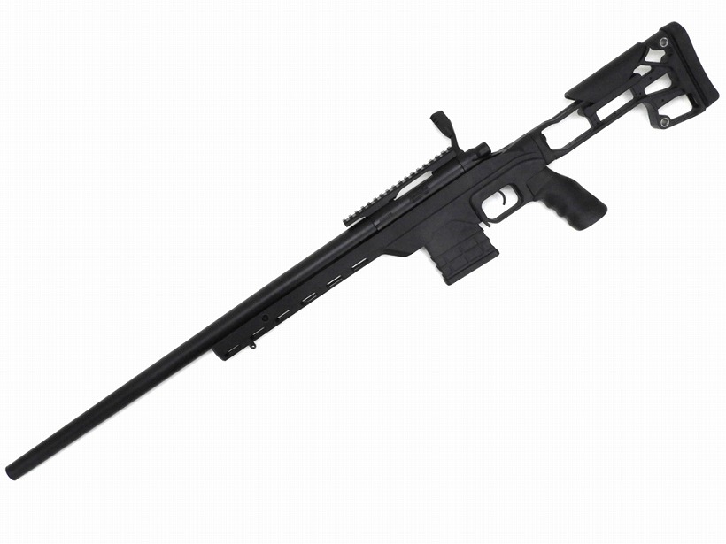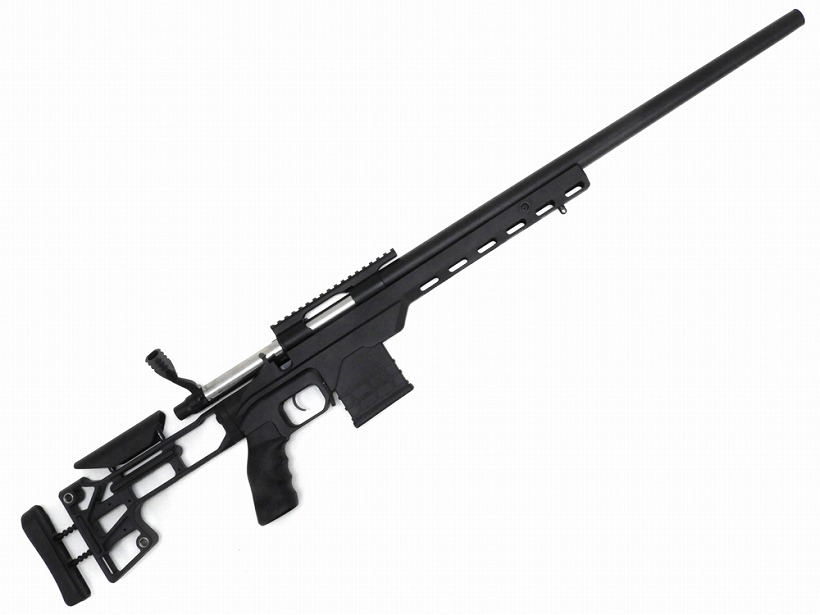 APS-2のシステムをベースに、ワンピース構造のチャンバー、左右のブレも調節可能な2つの独立したホップ調節レバーなど、精密射撃に重きを置いた構造のエアコッキングスナイパーライフルです。
