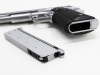 マグナテック専用に新規設計されたABS樹脂製スライドは、フロント・リアサイト一体成形+スリムなリアルサイズ。スライド後端までのびる大容量ピストンが、軽量スライドをハイスピードに作動させます。ステンレスシルバーモデル。