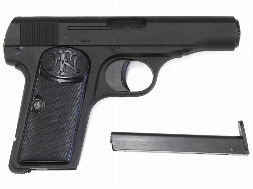 ジョン・ブローニングがベルギーのFN社に招かれて設計した傑作小型拳銃。服の下から取り出す際、極力引っかからないように設計されている。