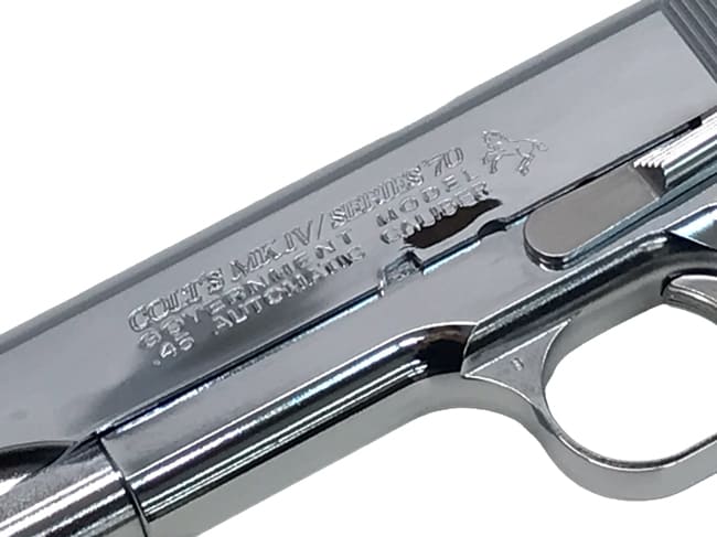 輝く光沢メッキを採用したコルト社の民間用ガバメント「シリーズ'70」「ニッケルフィニッシュ」!!