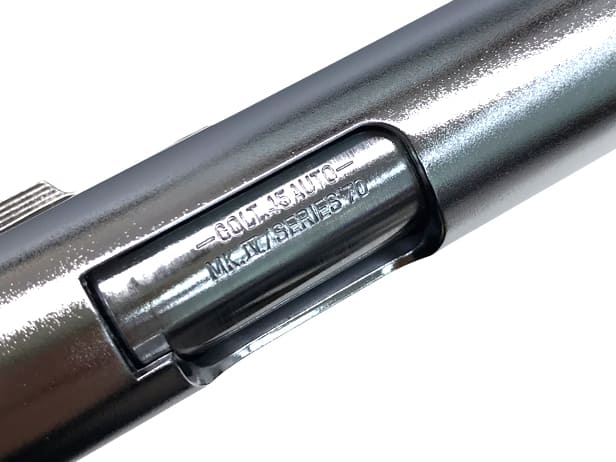 シリーズ'70を特徴づけるバレルブッシングやサムセフティ、グリップセフティ、スパーハンマーといったパーツ形状にもこだわり、光沢のあるシルバーに仕上げています。