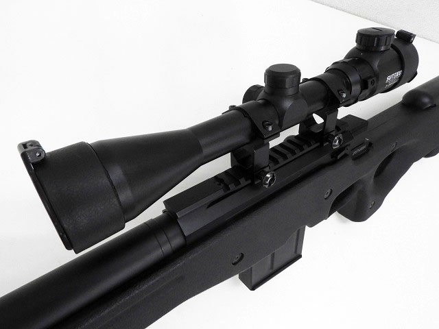 マウントリングと3-9x40EG イルミネートスコープがついたL96エアコッキングライフル。