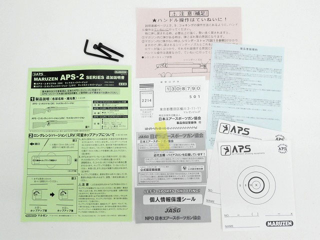 [マルゼン] APS-2 OR オリジナル ウッドストックバージョン マガジンなし プチカスタム (中古) 製品詳細画像10 追加説明書本体とストックを留めるボルト2本とそのレンチも付属。