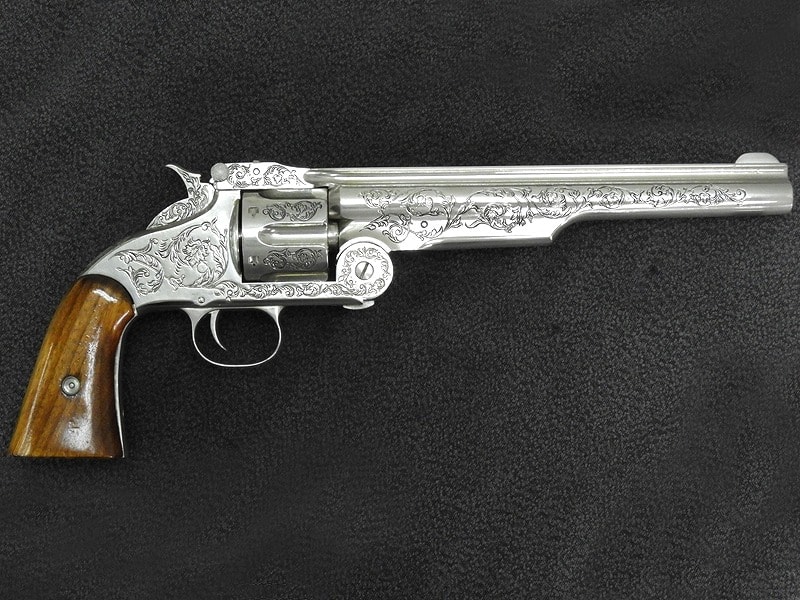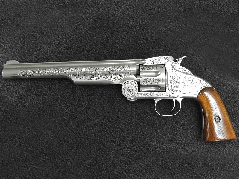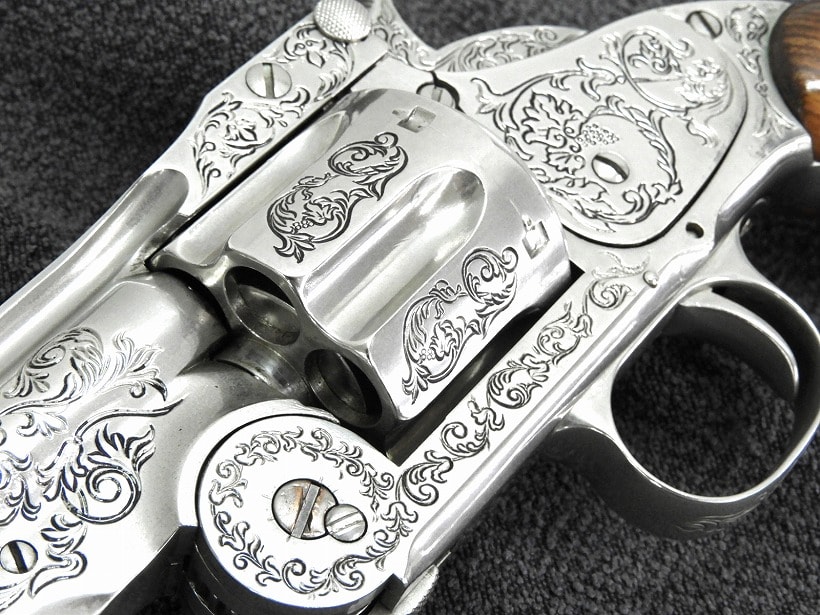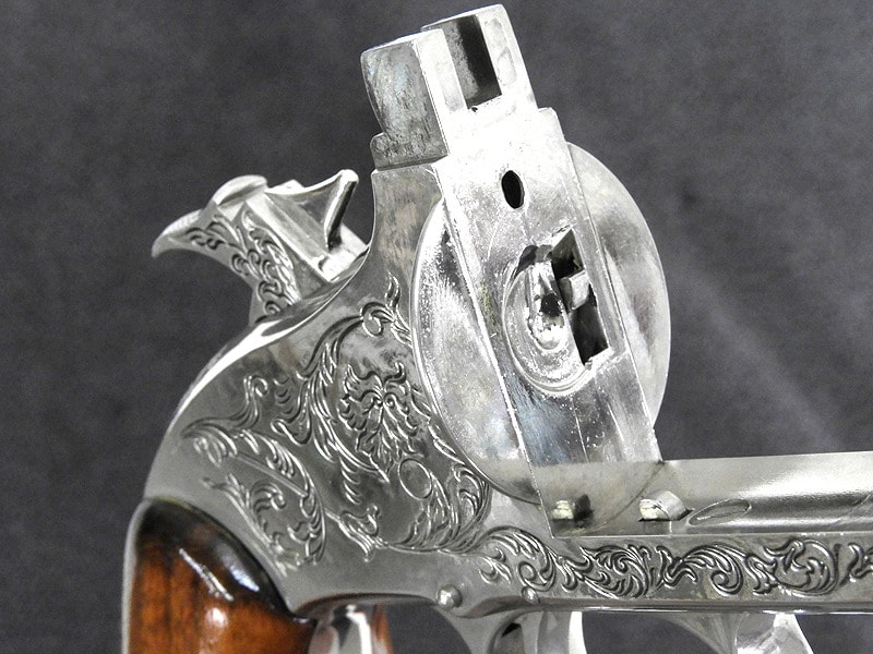 これでもかと全体に入ったエングレーブがすごいです!壁に掛けて飾っておきたい銃です。