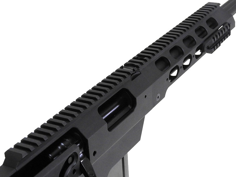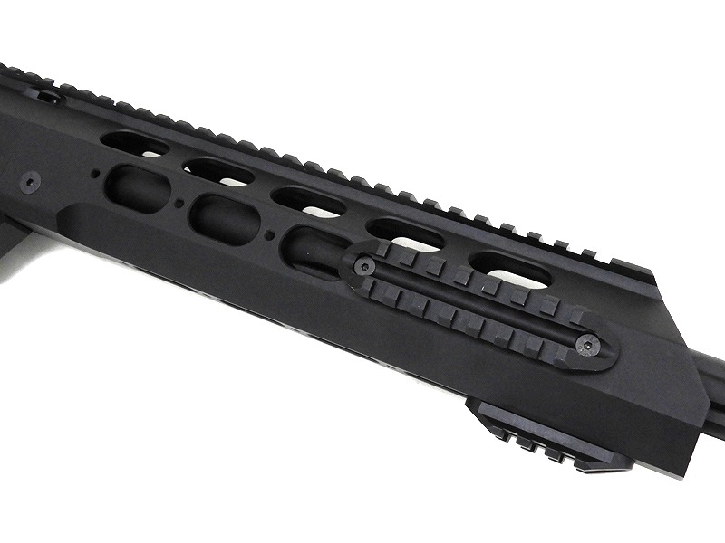 実銃さながらのタクティカルな外装は、Bushnellをはじめとするショートスコープやリューポルドを彷彿させる大口径のライフルスコープなど、どれを実装してもバランス良く仕上げることが可能です。