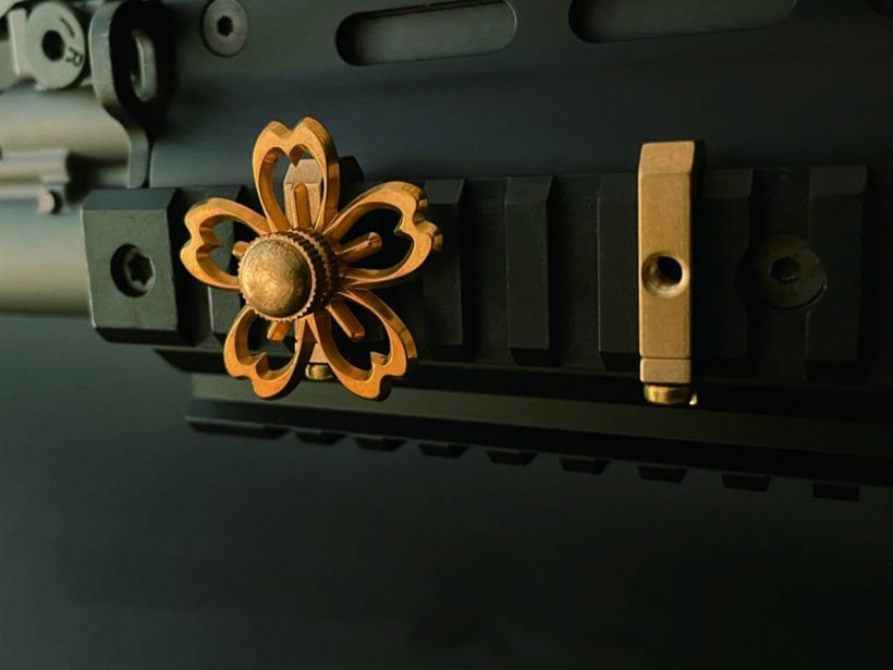 [Board Dragon Works] 真鍮戦飾 二十粍桜座 2個入 20mmレール対応 (新品) 製品参考画像1 取り付け例※桜飾りおよび銃本体は付属しません